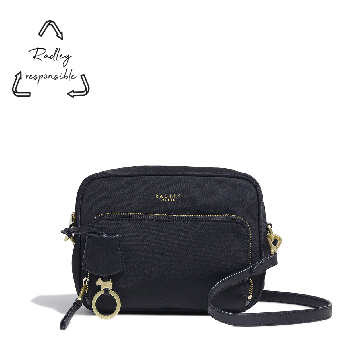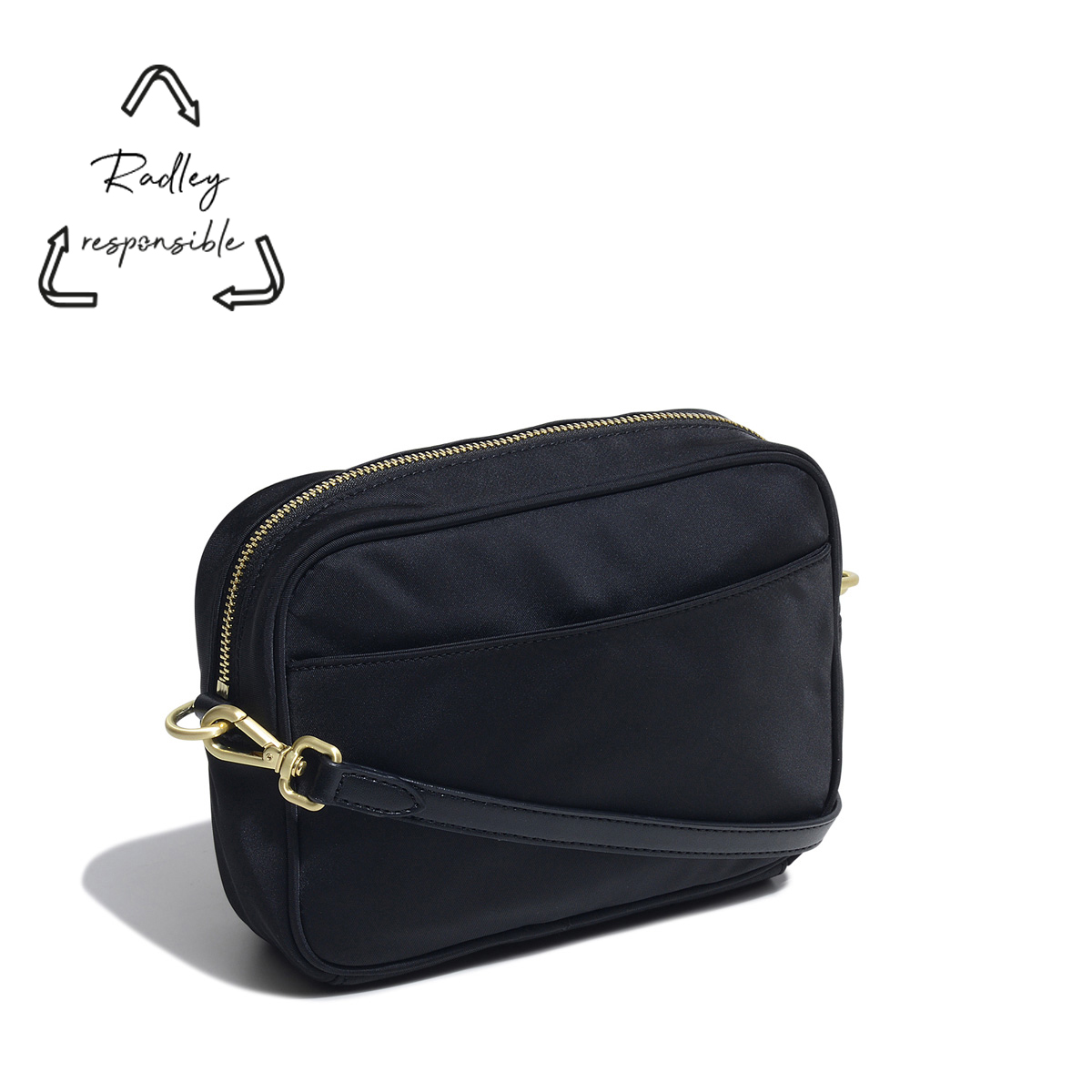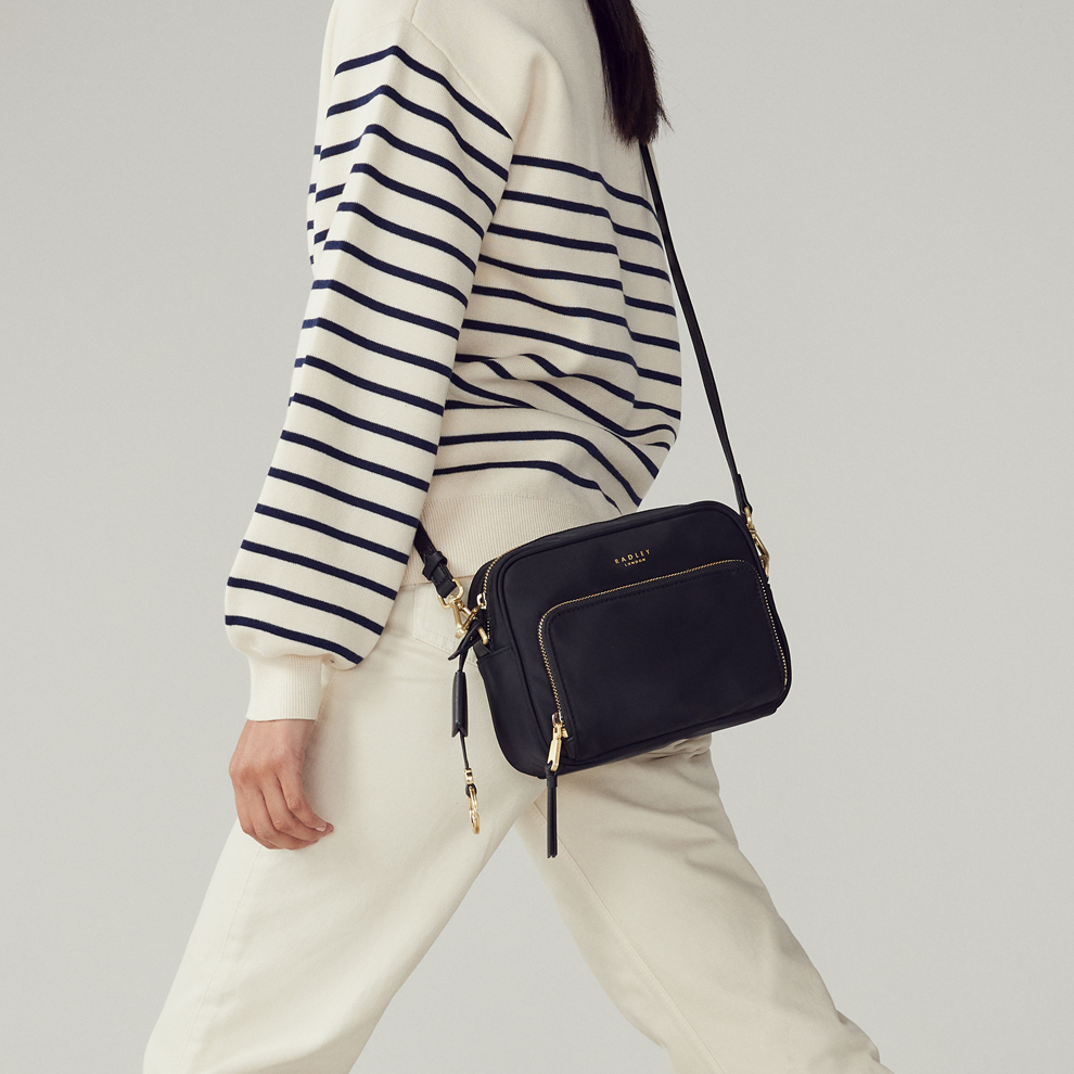 세련된 카메라 가방 모양의 이 컴팩트한 가방은